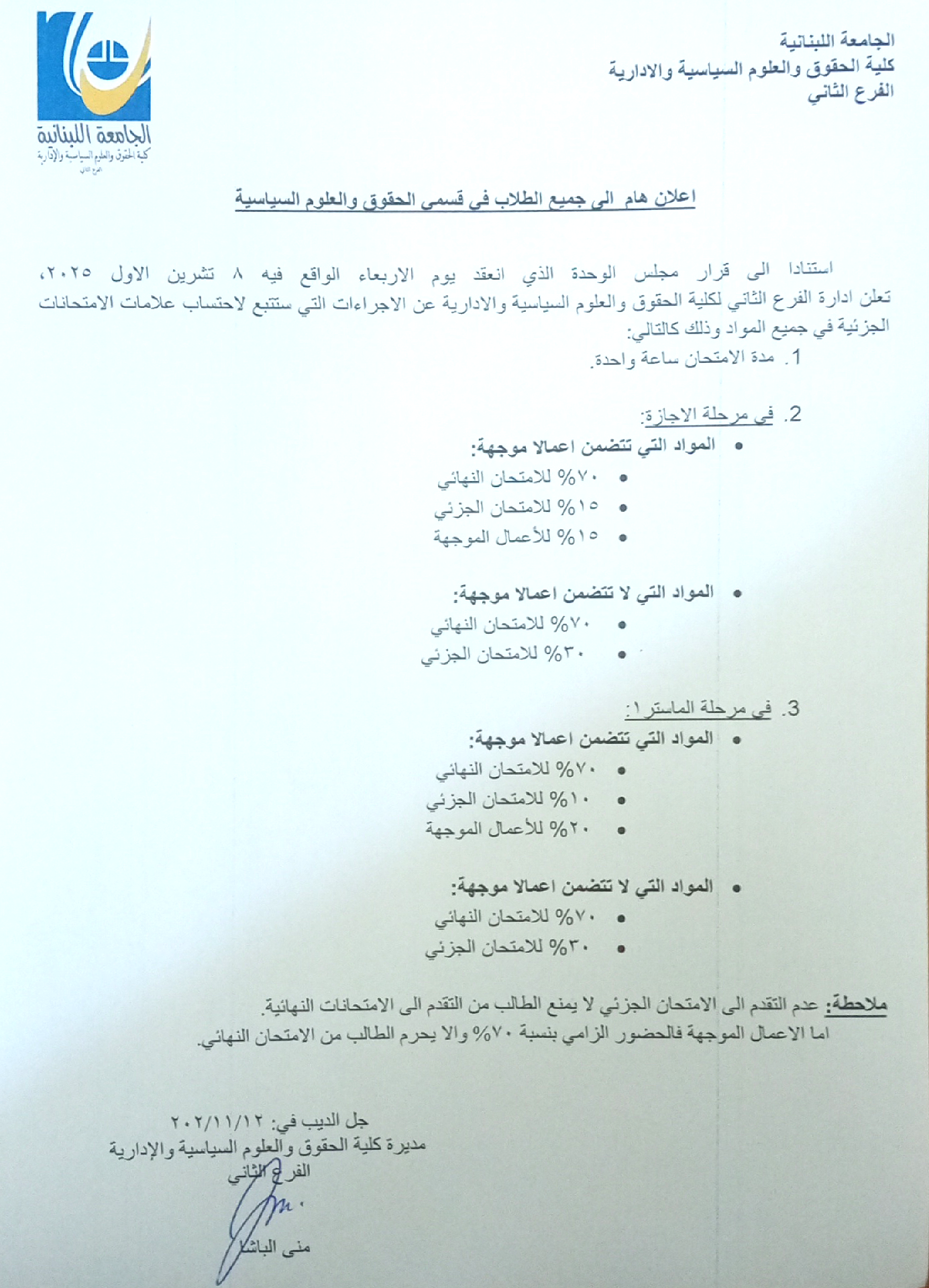 | للحصول على username و password on teams او للمراجعة يجب التواصل على البريد الالكتروني: droit2.teams@ul.edu.lb |